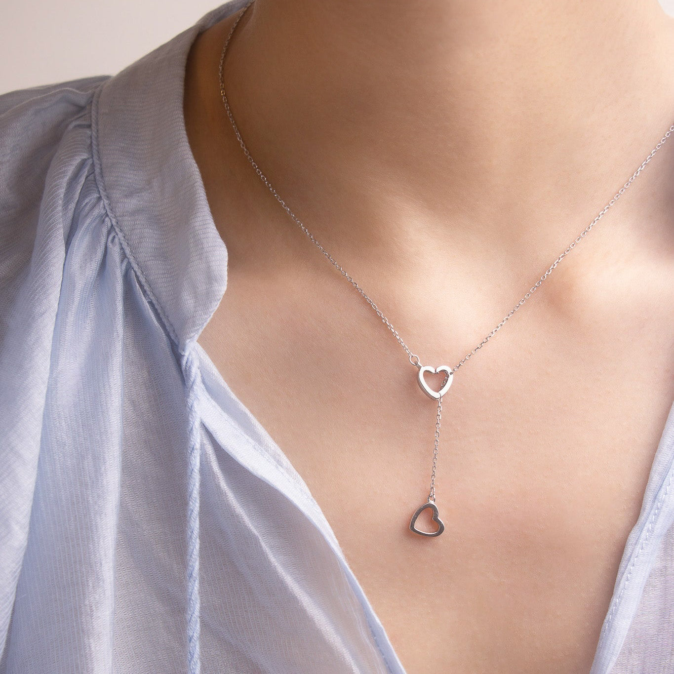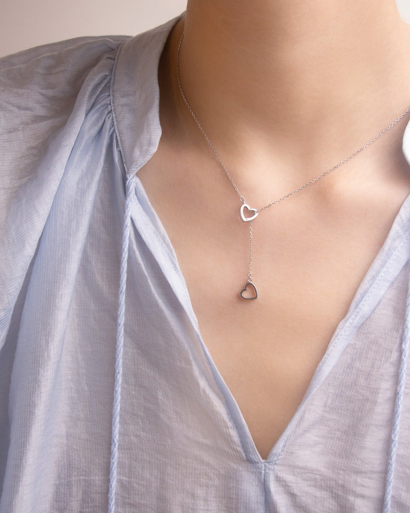 Lariat Necklace: Use the open-hook heart to clasp the chain to itself at the small jump ring near the solid heart pendant. This creates an elegant Y-style drop, allowing the dual hearts to rest on your neckline.