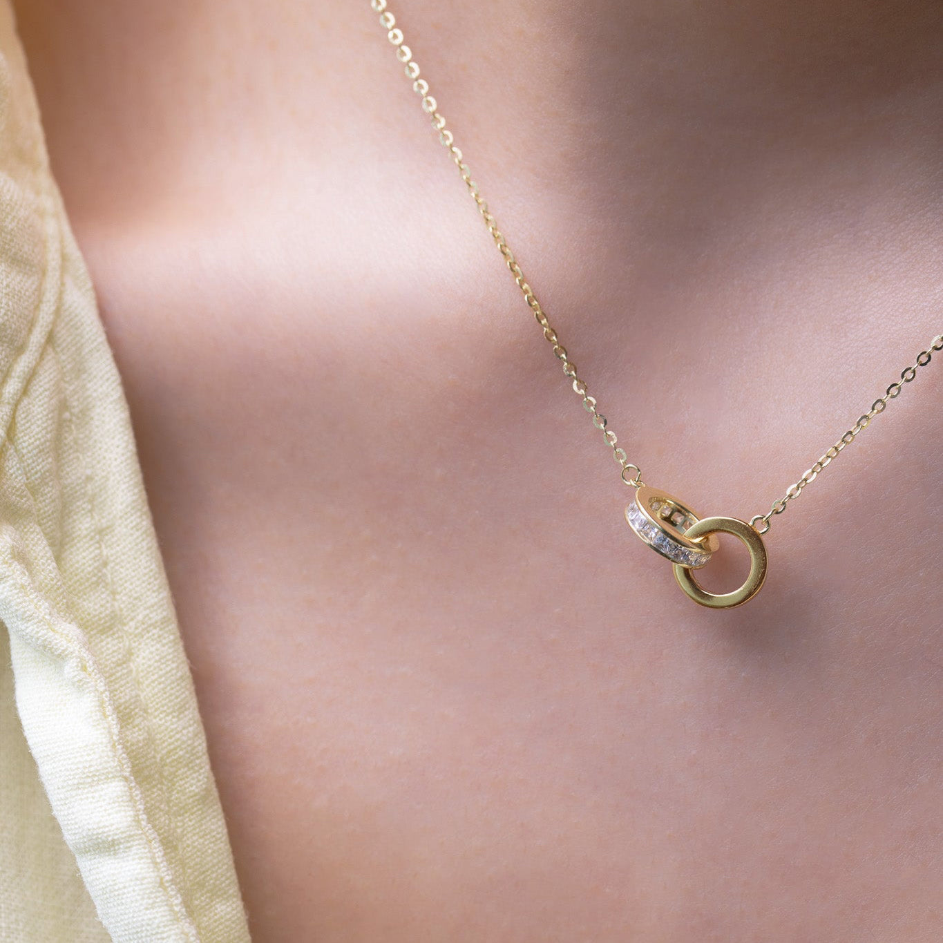 The Gold Halo Loop Necklace is classic piece with refined simplicity. Crafted from 18K gold-plated 925 sterling silver, it features a smooth, radiant golden loop, paired with a slender crystal bar set with hand-set cubic zirconias for a touch of sparkle.
