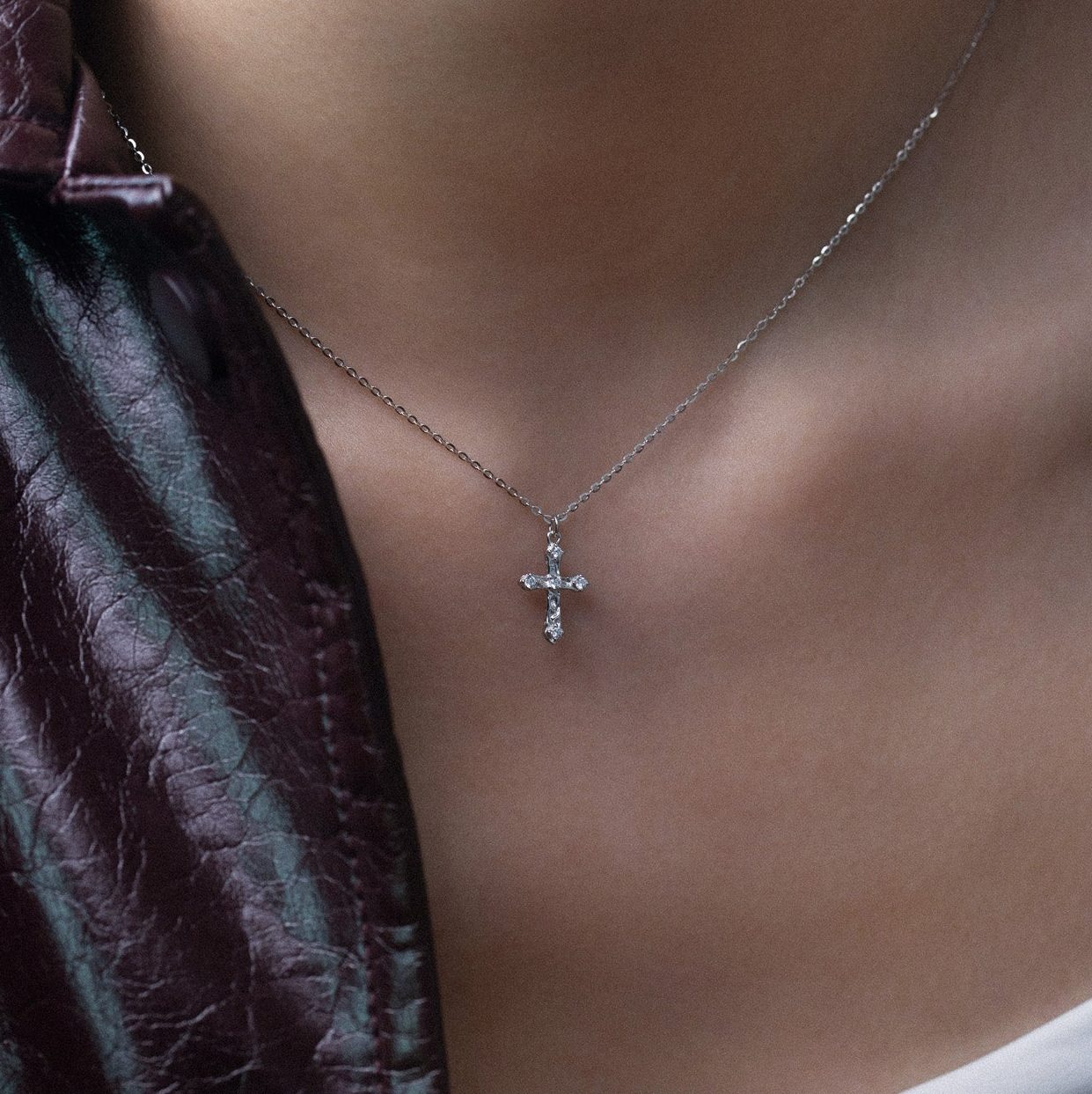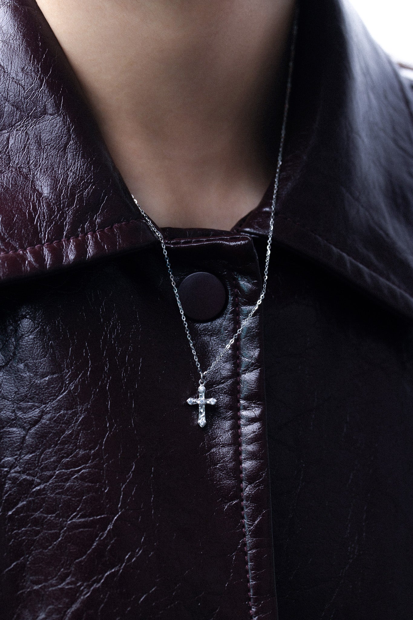 The Eterna Cross Necklace is defined by careful craftsmanship and attention to detail. Crafted in Rhodium plated 925 sterling silver, each piece is finished with subtle embossed textures that are intentionally kept soft and refined. The cross is thoughtfully shaped with smooth contours and a balanced weight as a reliable and effortless everyday wear.